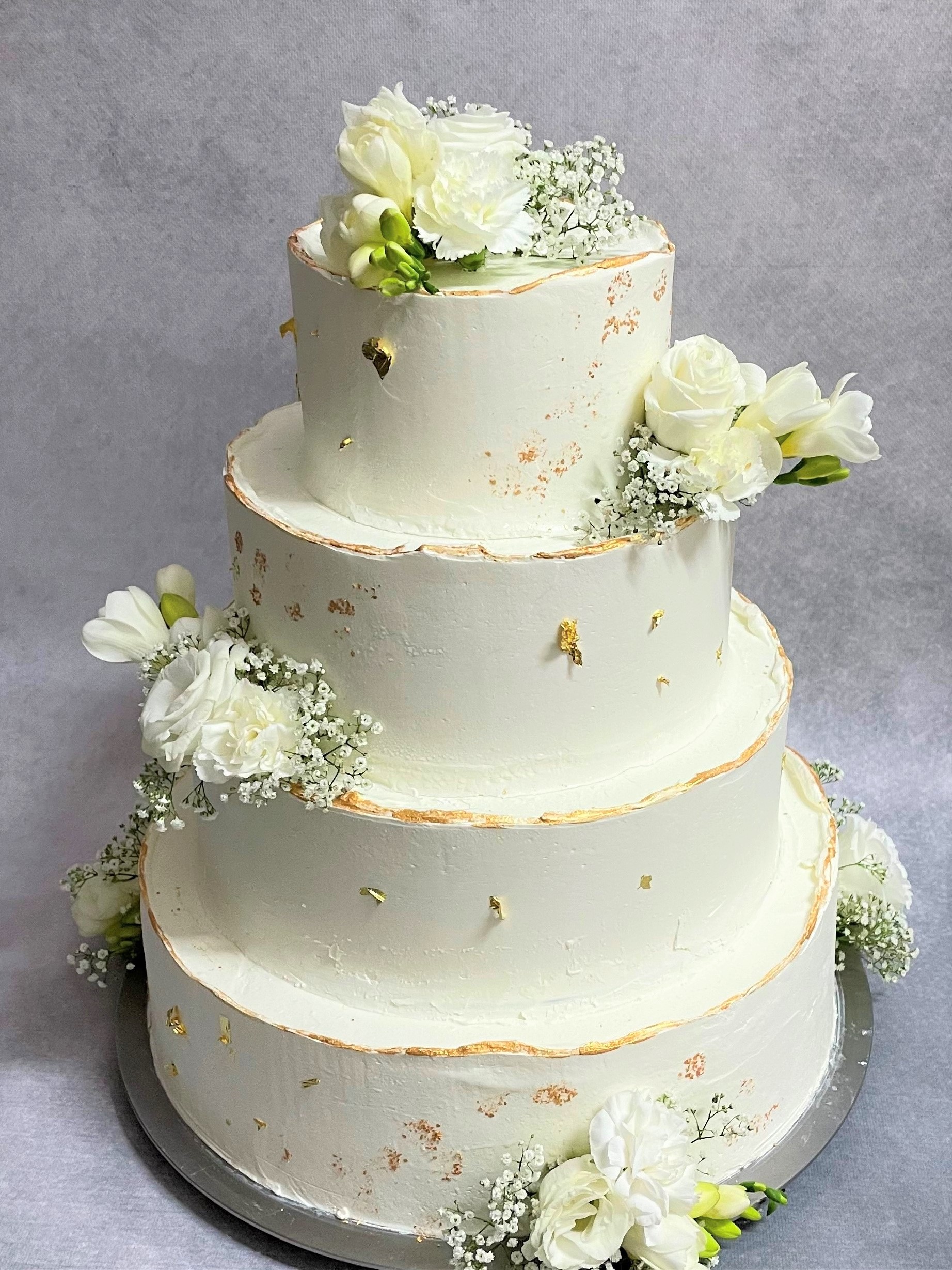W Ciastkarni Rarytas znajdziecie szeroki wybór tortów weselnych – zarówno pod względem smaków, jak i stylu wykonania. Przygotowujemy torty w klasycznej formie z wykończeniem z bitej śmietany lub czekolady, a także eleganckie wersje w stylu angielskim pokryte masą cukrową. Każdy tort to połączenie dopracowanego smaku i estetyki – tworzymy je z dbałością o każdy detal, by stanowiły nie tylko pyszny, ale i efektowny element przyjęcia. Dodatkowo oferujemy praktyczne i estetyczne paczki weselne dla gości: